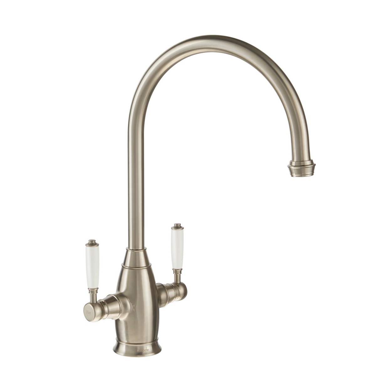 De Abode Oxbury keukenkraan nikkel mat combineert een klassieke vorm met een rustige, moderne afwerking. Geen glans, geen poespas, maar een kraan die precies doet wat je verwacht en er goed uitziet in vrijwel elke keuken.