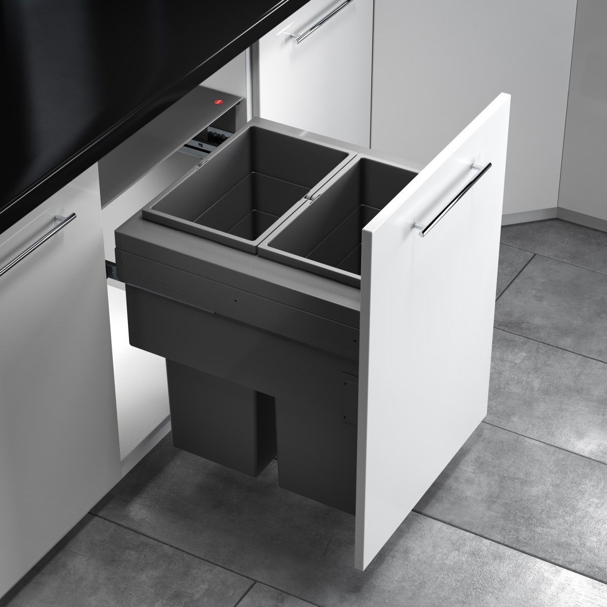De Hailo Euro Cargo 500 NT480 afvalsysteem 70 liter is een slimme oplossing voor wie afval netjes uit het zicht wil houden. Je monteert dit systeem achter een frontdeur, waardoor het automatisch meebeweegt zodra je de kast opent.