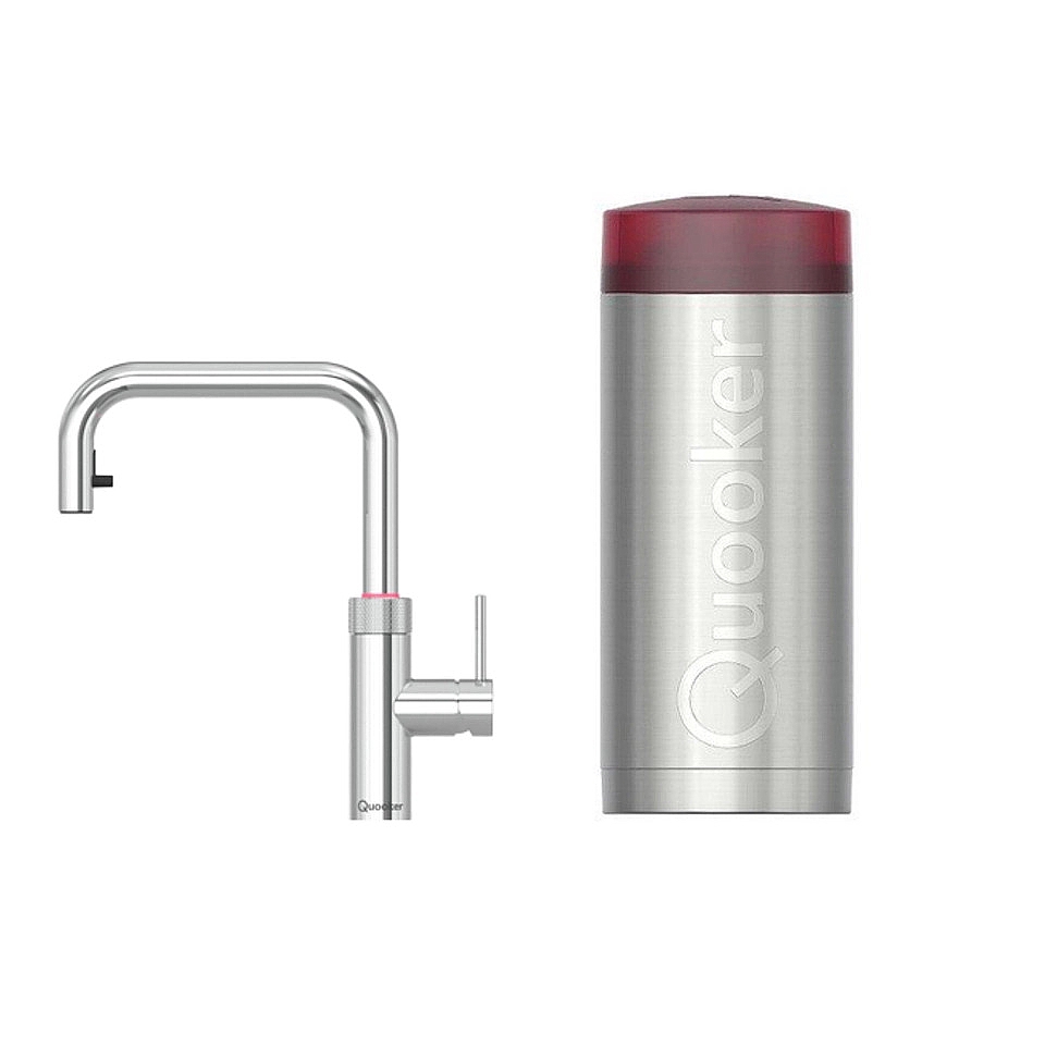 De Quooker Flex Square in chroom met Combi Plus reservoir is de perfecte keuze wanneer je kokend water, warm water én koud water direct uit één kraan wilt tappen. De rechte uitloop geeft een moderne uitstraling en de uittrekbare slang zorgt voor extra bereik bij schoonmaken en spoelwerk. Het Combi Plus reservoir levert onbeperkt warm water, zelfs wanneer er een koude waterleiding wordt gebruikt. Daardoor is deze combinatie ideaal voor woningen waar warm water ver moet komen of waar je geen wachttijd wilt.