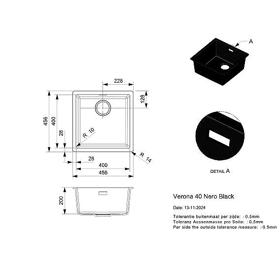 De Verona 40 is een spoelbak die zowel functioneel als stijlvol is. Dankzij de diepte kun je probleemloos grote pannen schoonmaken, terwijl de strakke vierkante vorm mooi aansluit bij moderne keukens met rechte lijnen. De Nero Black kleur laat zich uitstekend combineren met lichte werkbladen voor een opvallend contrast, maar staat ook chique in een donkere keuken. Zo haal je een duurzame en veelzijdige spoelbak in huis waar je elke dag plezier van hebt.